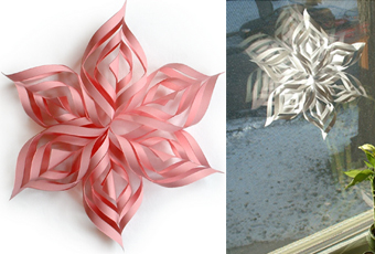 Dziecinnie prosta do zrobienia, więc można razem z dziećmi przygotować dużo takich ozdób. Pojedyncze można powiesić nad stołem lub choince, łączone pięknie ozdobią okno – zobacz