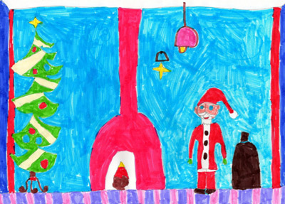 Mama Łucji napisała: Praca została narysowany flamastrami. Warto zwrócić uwagę na piękne i długie rzęsy Mikołaja, a do tego jest on nowoczesny bo prezenty rozwozi na nartach.