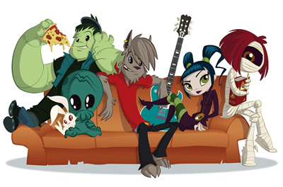 Paczka dość nietypowych, troszkę „upiornych”, ale sympatycznych i zdecydowanie kochających muzykę nastolatków zakłada swój zespół rockowy. Larry, chłopiec-wilkołak, Wiktoria, zupełnie w nim niezakochana dziewczyna-wampir, Franek, którego wygląd jest efektem nieudanego eksperymentu naukowego, grająca na gitarze basowej Mumia i uwielbiający króliki kosmita Kosma to gwarancja świetnej zabawy w akompaniamencie dobrej muzyki.
