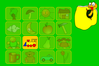 Ćwiczymy pamięć. Na planszy podświetlają się kolejno rysunki. Najpierw tylko jeden, potem dwa, trzy i tak dalej. Trzeba zapamiętać kolejność jak największej ilości podświetlanych rysunków. Robaczek pojawiający się w prawym rogu pokaże Wam, jaki medal zdobyliście w grze.